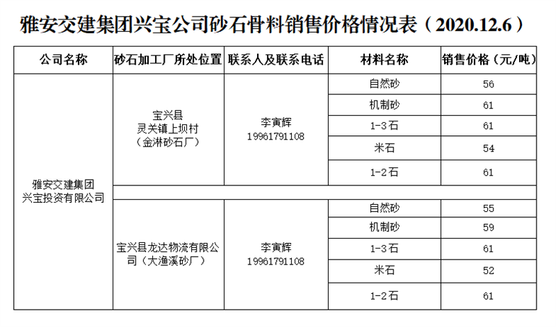 ÑŰ²½»½¨¼¯ˆF(tu¨¢n)ÅdŒš¹«Ë¾É°Ê¯¹ÇÁÏäNÊÛƒr¸ñÇé›r±í£¨2020.12.6£©