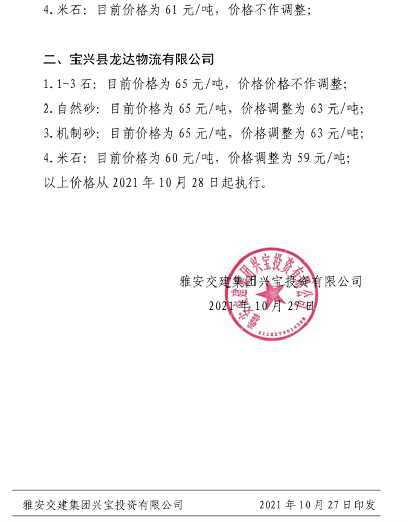 ÑŰ²½»½¨¼¯ˆFÔÆÊ¯¹«Ë¾êPÓÚÕ{Õû³ÉÆ·ÁÏäNÊÛƒr¸ñµÄ֪ͨ£¨2021.11.4£©