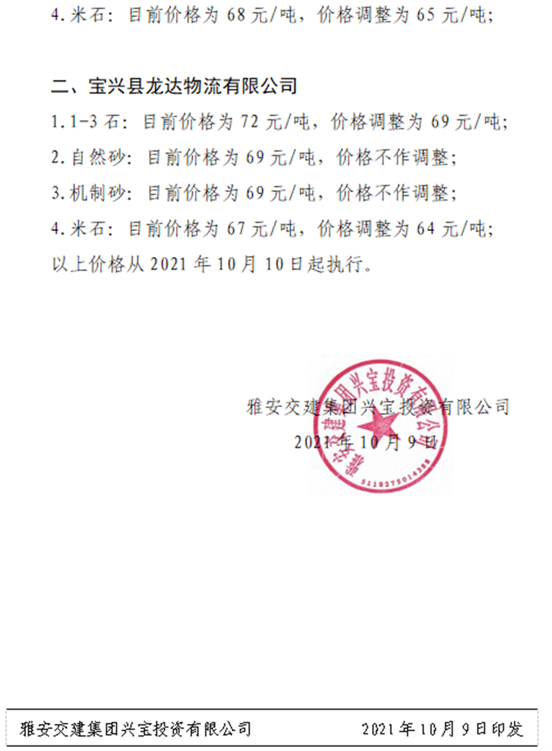 ÑŰ²½»½¨¼¯ˆF(tu¨¢n)ÅdŒš¹«Ë¾êP(gu¨¡n)ÓÚÕ{(di¨¤o)Õûɰʯ³ÉÆ·ÁÏäN(xi¨¡o)ÊÛƒr(ji¨¤)¸ñµÄ֪ͨ£¨2021.9.28£©