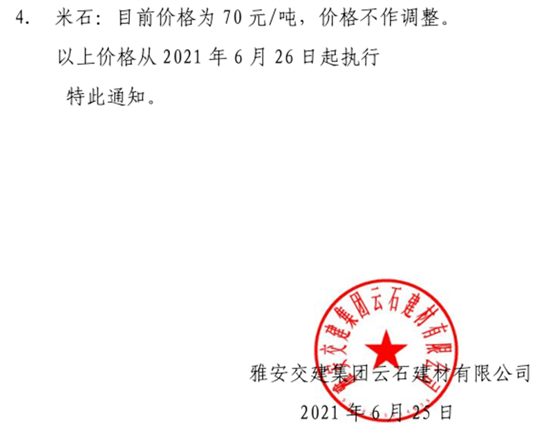ÑŰ²½»½¨¼¯ˆF(tu¨¢n)ÔÆÊ¯¹«Ë¾É°Ê¯¹ÇÁÏäNÊÛƒr(ji¨¤)¸ñÇé›r±í£¨2021.6.24£©