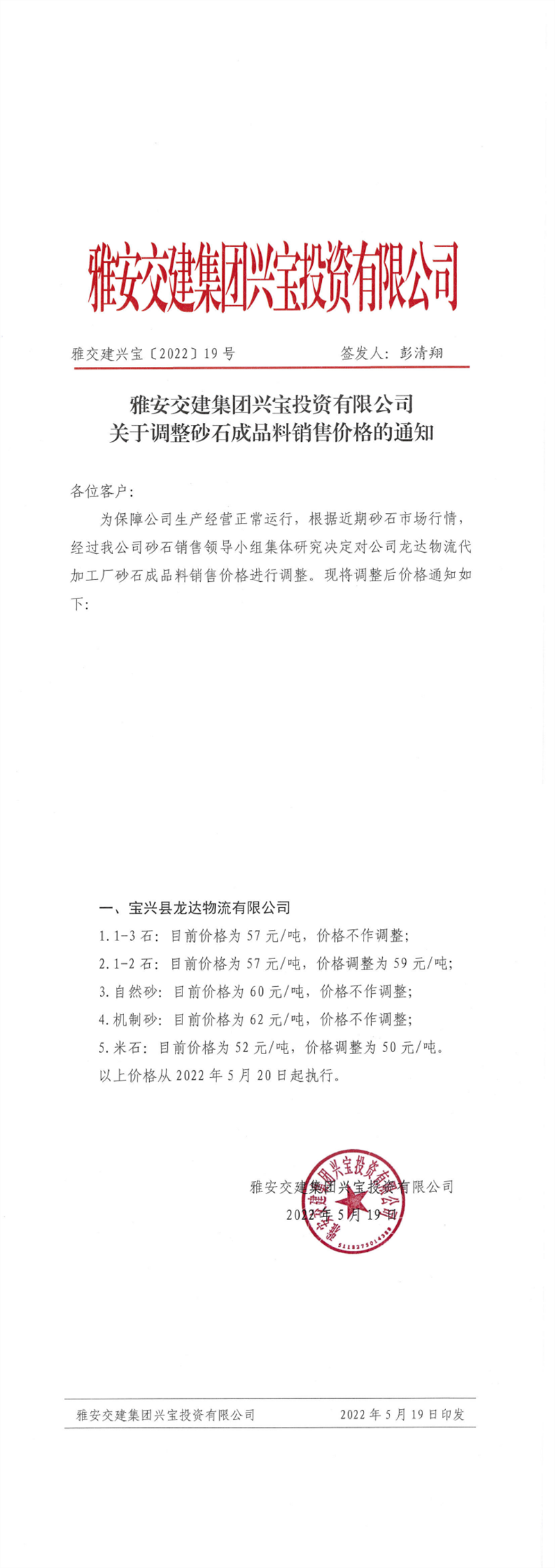 ÑŰ²½»½¨¼¯ˆFÅdŒš¹«Ë¾êPÓÚÕ{Õûɰʯ³ÉÆ·ÁÏäNÊÛƒr¸ñµÄ֪ͨ-2022-5-19