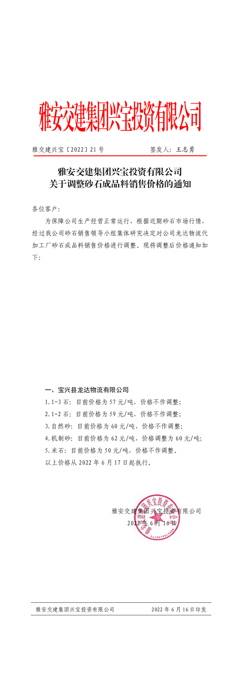 ÑŰ²½»½¨¼¯ˆF(tu¨¢n)ÅdŒšÍ¶ÙYÓÐÏÞ¹«Ë¾ êP(gu¨¡n)ÓÚÕ{(di¨¤o)Õûɰʯ³ÉÆ·ÁÏäNÊÛƒr(ji¨¤)¸ñµÄ֪ͨ£¨2022.6.16£©